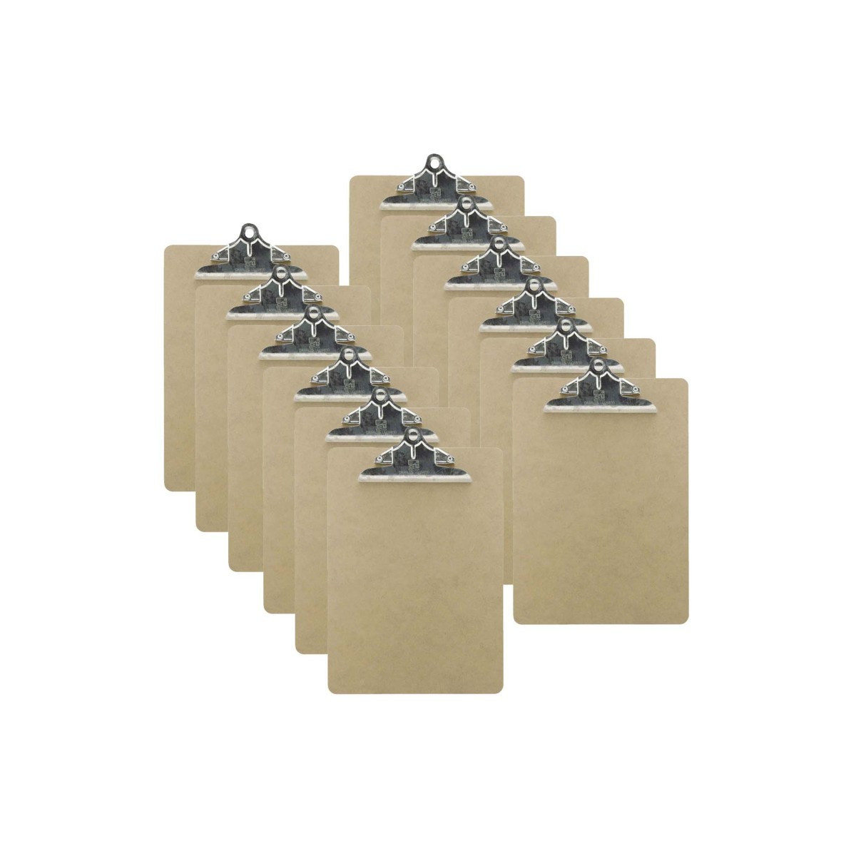 Double sided 0.13" masonite hardboards allow you to take your work anywhere. Designed with smooth beveled edges for comfort and safety. Six inch metal clips with high tension spring provide secure grip. Sturdy masonite clipboards will allow you to write with ease while you walk around! Six inch metal clips with high tension spring provides a secure grip to hold all your papers. Letter Size. Pack of 12 clipboards.
