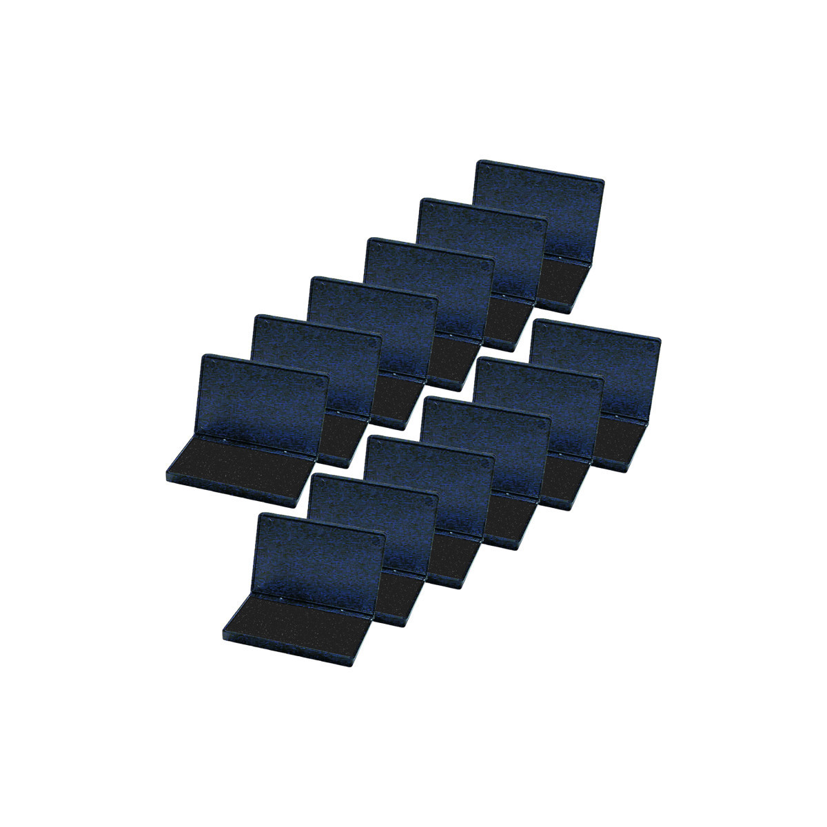 Thick foam pads provide clean, crisp impressions. Packed in hinged casings made of sturdy plastic. Each pad is individually shrink wrapped. Re-inkable. Non-toxic inks. Sold as a pack of 12 stamp pads.