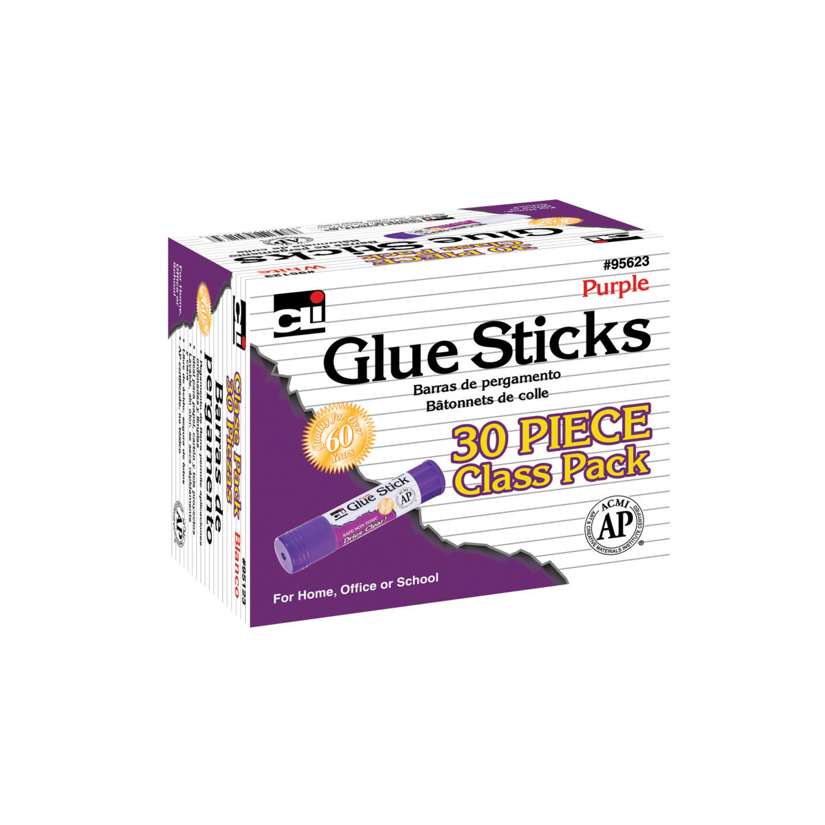 Glue sticks are great for arts and crafts. AP Certified, non-toxic glue sticks provide neat and clean application. Ideal for paper, cardboard, photos and fabric. Washable, odorless, dries fast and clear. Convenient lipstick style applicator. Conforms to ASTM D-4236. Acid free. This set includes 30 purple glue sticks.