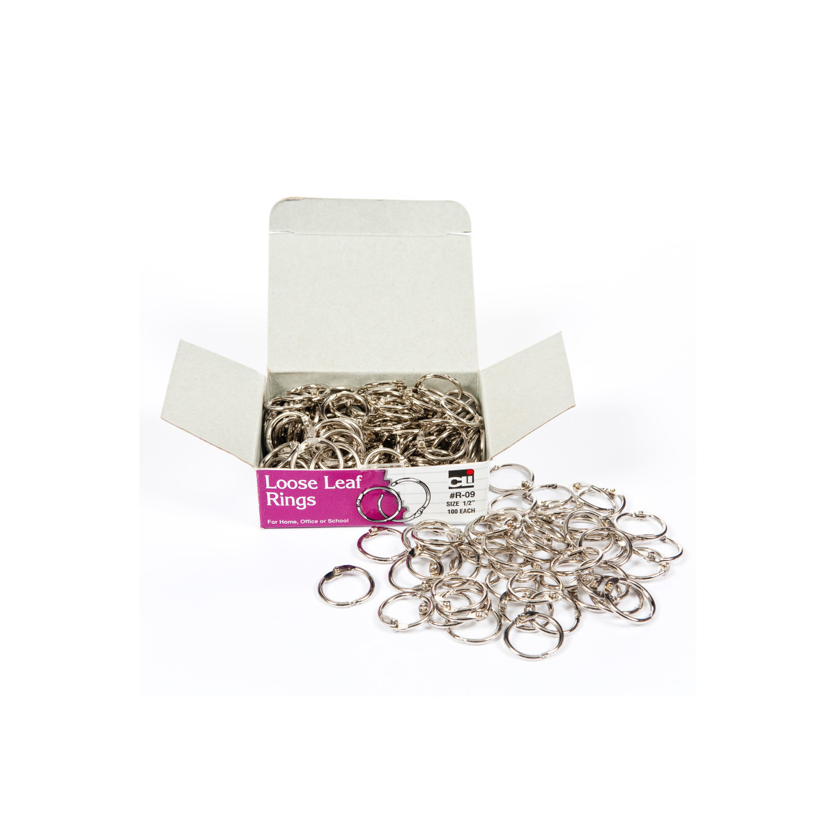 Versatile rings feature precision snap lock closures. Ideal for samples, swatches, loose-leaf material and more. Bright nickel-plated rings are rust-proof. Rings measure 1/2" diameter. Each box includes 100 rings.