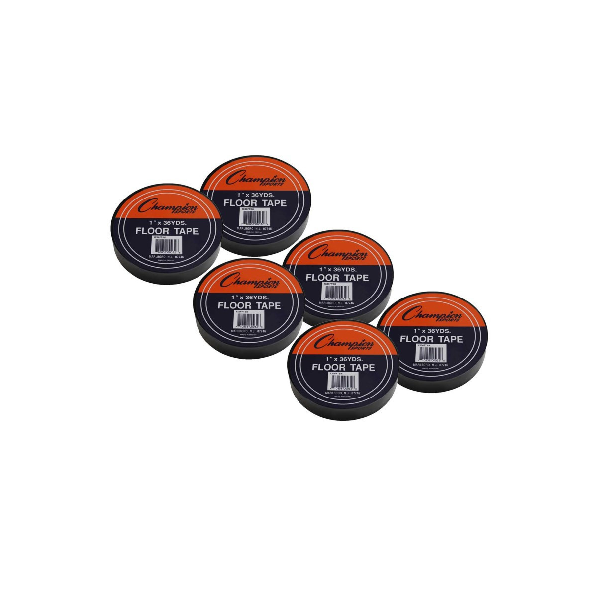 Champion Sports Vinyl Floor Marking Tape is perfect for marking your gym floors, courts, or any hard smooth surface. Made of tough vinyl, this floor tape comes off clean and won't scuff your floors, but is strong enough to hold up to foot traffic and equipment. 1" x 36yd. Vinyl. Black. Sold as 6 rolls of tape.