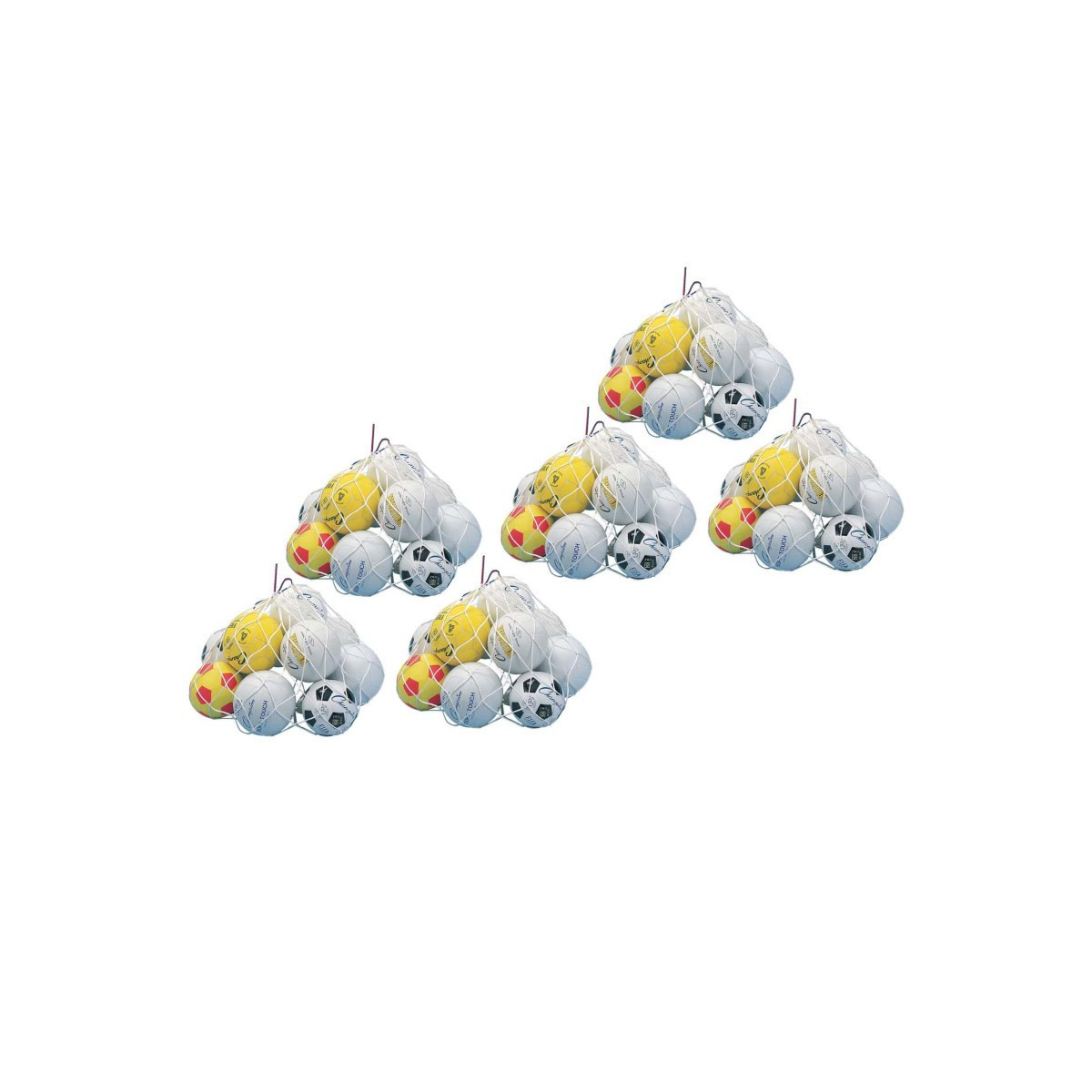 The Champion Sports Ball Bag is made of heavy-duty 4" square mesh with a drawstring. This bag can hold up to ten basketballs. Pack of 6 bags.