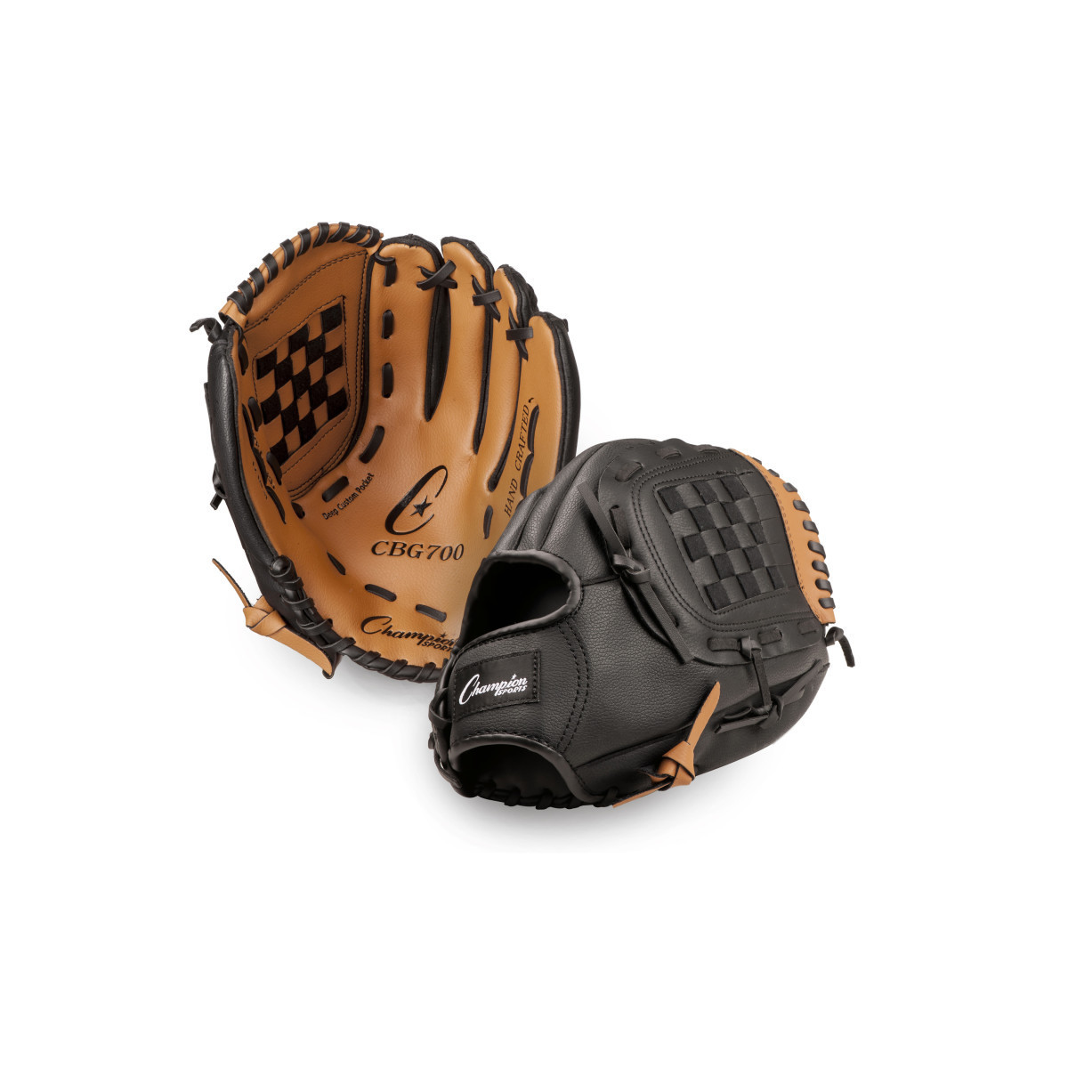 Designed for use in elementary or high school leagues, the Champion Sports 12 Inch Leather & Vinyl Baseball/Softball Glove is made with a leather front and vinyl back for maximum comfort and durability. The closed basket web and conventional back design makes this baseball glove versatile enough for any position on the field, while the deep set pocket traps the ball with ease.