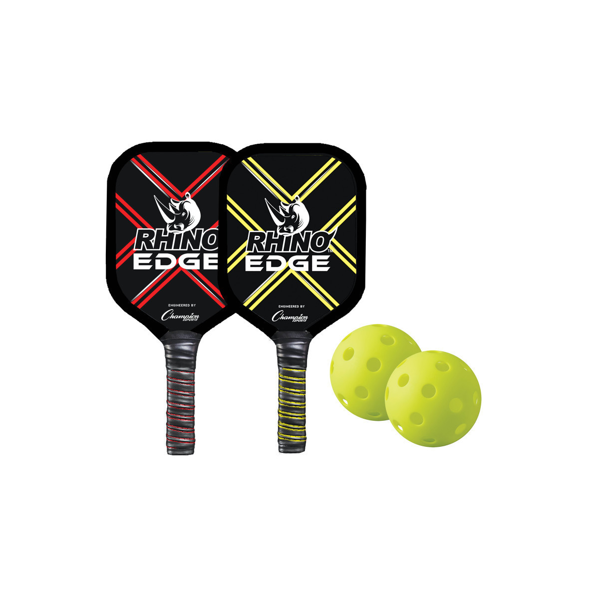Grab your paddles and let the fun begin with our RHINO Pickleball EDGESET 2-Player Wooden Pickleball Paddle Set. Made to conform to each player's hand, these paddles breed friendly competition and includes two optic yellow pickleballs, as well as two multi-color paddles.