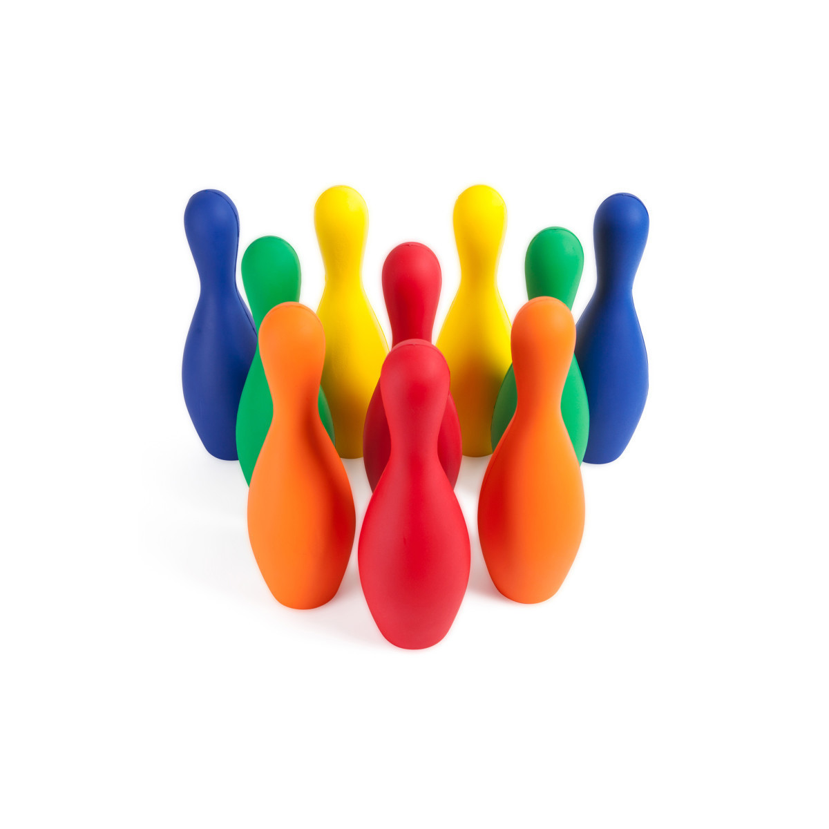 The Champion Sports Rhino Skin® Multi-Color Foam Bowling Pin Set is fun for everyone to bowl safely indoors or outdoors. Made with our tough Rhino Skin® coating, these colorful bowling pins resist peeling, cracking, and moisture so you can be sure they will last. This set includes ten weighted foam pins, 2 each of Red, Orange, Yellow, Green, and Blue.