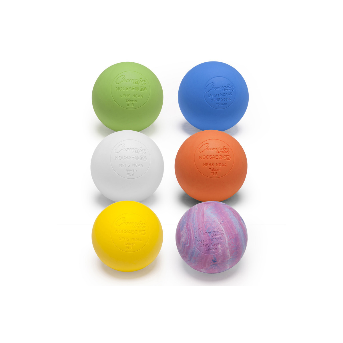 With a variety of colors, the Champion Sports Lacrosse Ball 6 Color Set is great for any team practice or gym class. Constructed from molded rubber, these official size and weight lacrosse balls offer exceptional accuracy when shooting and are designed to meet NFHS and NCAA specifications. This lacrosse ball set also includes a mesh bag for easy and convenient storage and transportation.