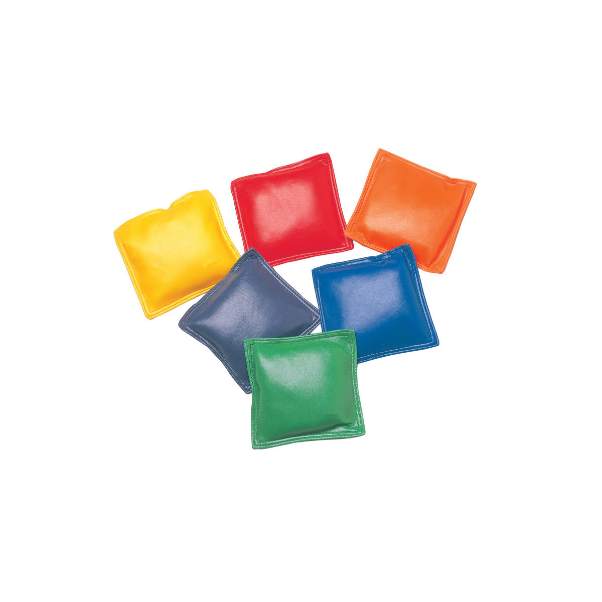 Our Champion Sports Bean Bags are ideal for throwing, catching, and learning. Perfect for tossing games and for developing motor skills, these soft vinyl bags are rugged and hand conforming. These double reinforced vinyl shells with soft corners are filled with non-toxic plastic pellets. Size: 5". Each set of twelve bean bags includes two each in red, orange, yellow, green, blue, and purple.