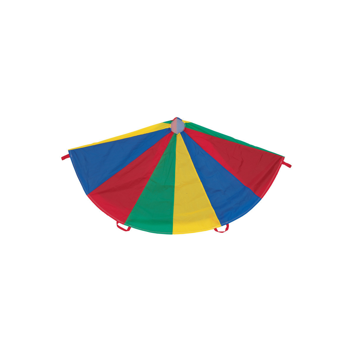 The Champion Sports multi-colored parachutes provide stimulating fun for kids of all ages. Made of ripstop nylon material for extra durability, all the panels are double-stitched for added strength. The handles are also double-stitched so they will not tear or come loose. The reinforced mesh center allows ample air flow and prevents balls from rolling through. Parachute measures 20' and includes 16 reinforced handles.