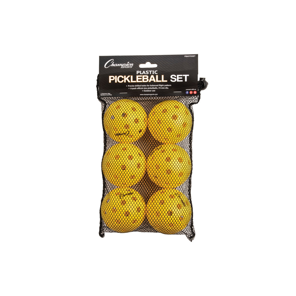 The Recreational Outdoor Pickleball Set are superior balls made for the up-and-coming sport of pickleball. This ball is engineered with the best PE material and the seamless design allows for unlimited hours of aggressive game-play. The precisely drilled holes allow for a balanced flight pattern. The weight and size are ideal for a perfect game on outdoor courts. Each pack includes 6 pickleballs.