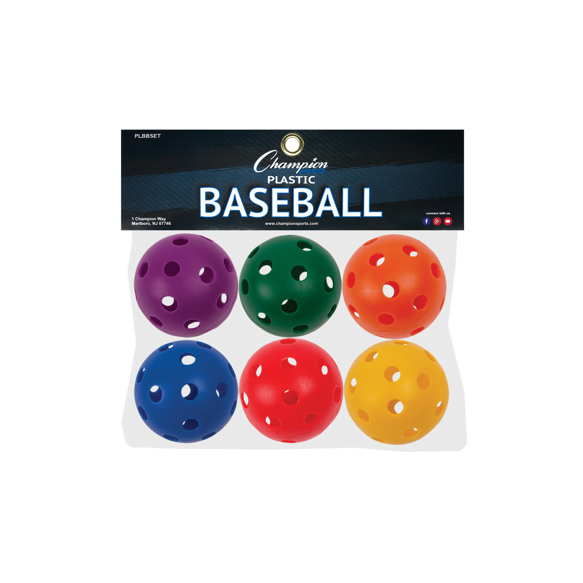 Kids will have a blast playing catch or working on their pitching with the versatile Champion Sports Plastic Baseball Set. Great for everything from gym class to recreational activities, these hollow plastic baseballs are a safe option for young children to play with, economical, and light enough for a student to carry the whole bag out from storage with ease. This convenient plastic baseball set features six vibrant colors that are easy to spot against the grass, ground and pavement when it's time to clean up. Each set includes 6 balls.
