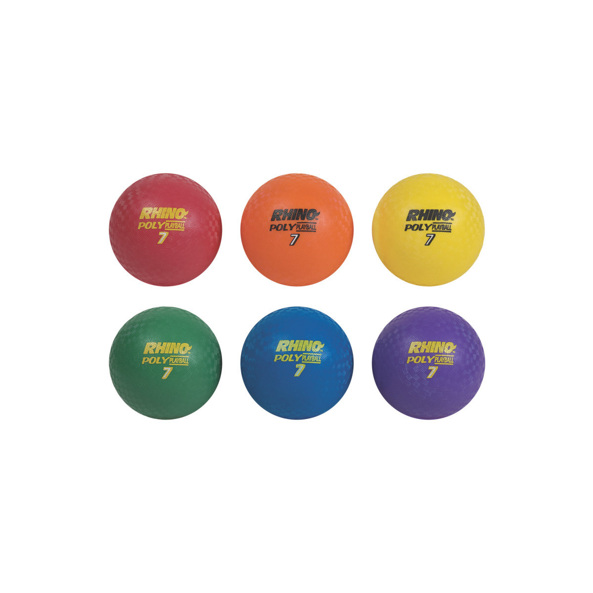 Take on a variety of playground games with the 7 Inch Rhino® Poly playground ball set. These balls are designed using a unique process of rotational molding, ensuring each ball will maintain the perfect shape after regular use. This ultimate bladderless playground ball features a seamless design that prevents no shape distortion or air leakage even if it's over-inflated. The Rhino® Poly playground ball set offers ease of play and is an excellent choice for all age groups. The Rhino® textured cover offers exceptional grip and durability, making them a convenient option for gym classes and playground games during recess.