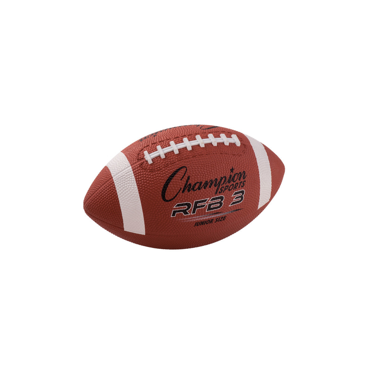 Covered with water-resistant pro rubber for a better grip and durability, this Champion Sports Junior Size Rubber Football is great for practice games, training and recreational play inside or out. The rubber football has a two-ply butyl bladder to maintain its shape after each pass, and can take a beating on the field, in the park or the gym.