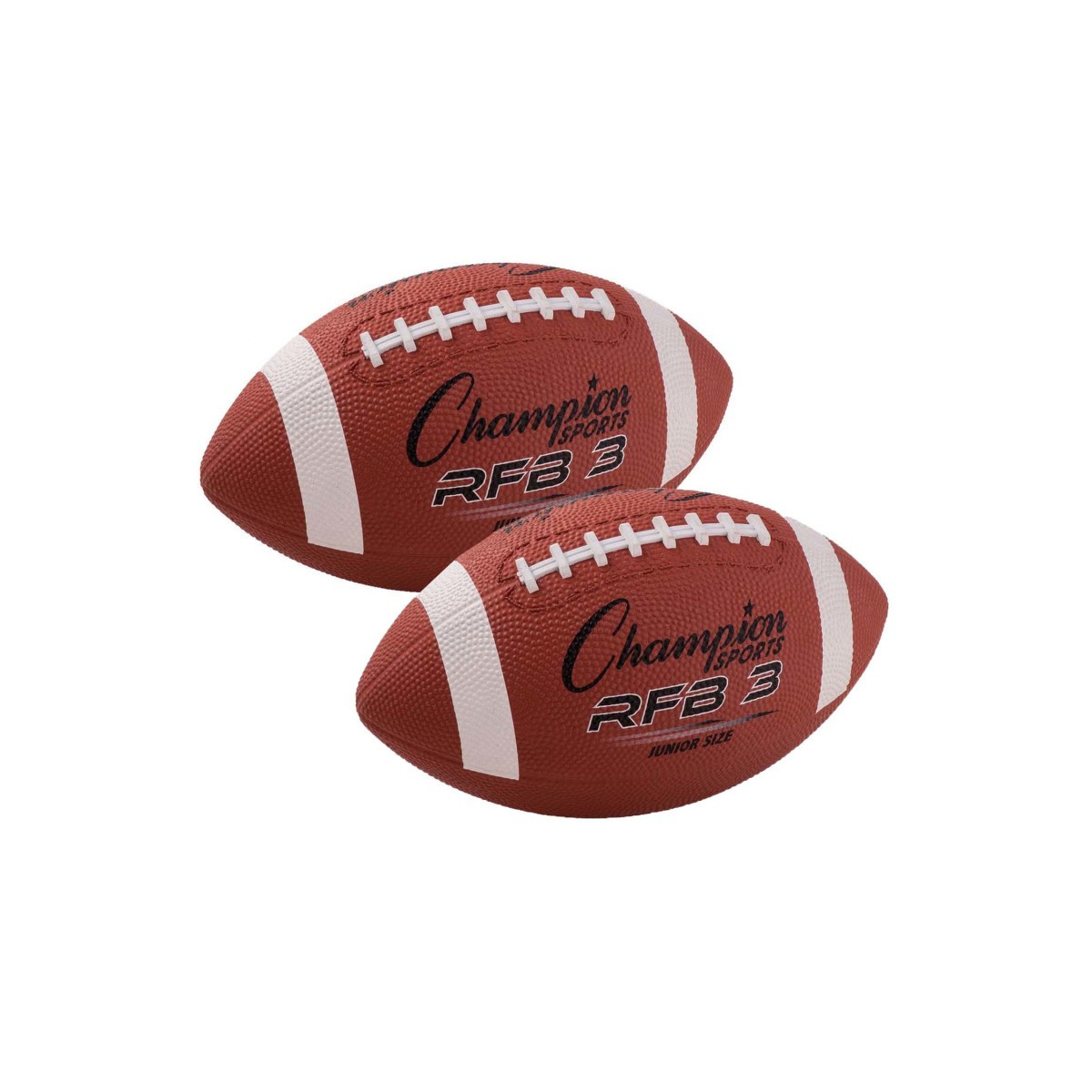 Covered with water-resistant pro rubber for a better grip and durability, this Champion Sports Junior Size Rubber Football is great for practice games, training and recreational play inside or out. The rubber football has a two-ply butyl bladder to maintain its shape after each pass, and can take a beating on the field, in the park or the gym.