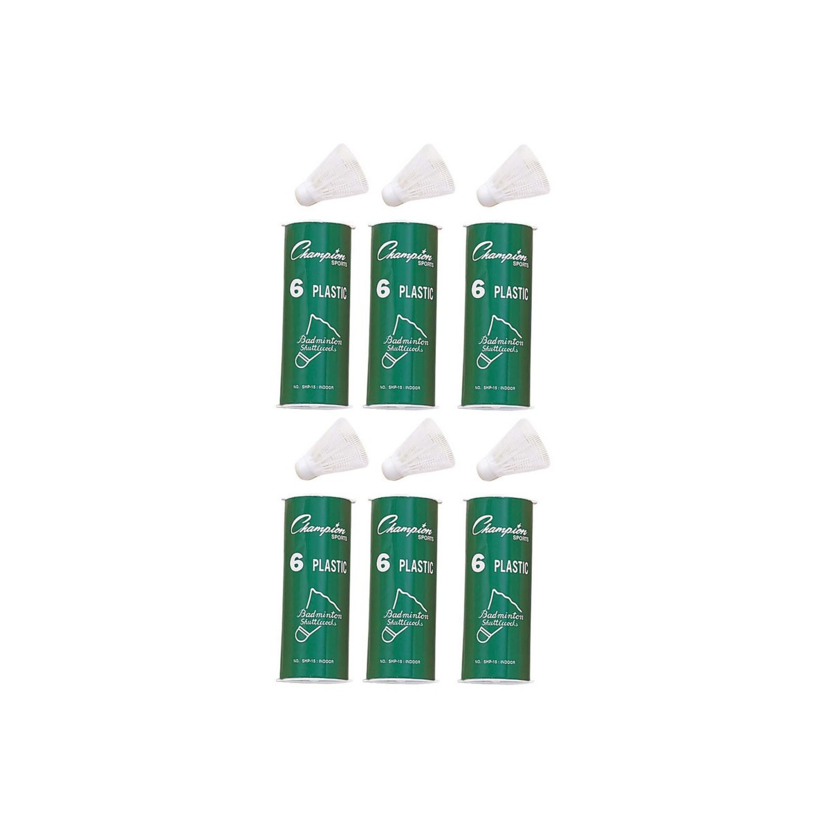 The Champion Sports Plastic Indoor Shuttlecocks come 6 to a tube, so you'll be stocked up and ready for game time! These plastic shuttlecocks have a white rubber base for indoor play. Each pack includes 6 shuttlecocks. Sold as 6 packs for a total of 36 shuttlecocks.