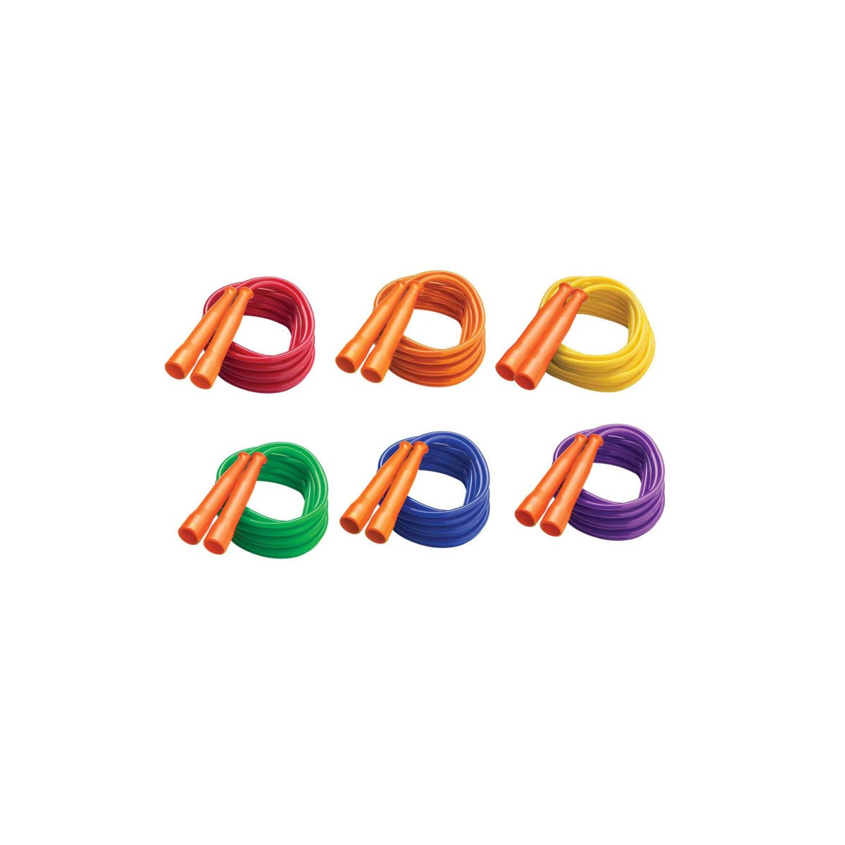 The Champion Sports Licorice Ropes are designed for speed jumping, and feature a molded plastic handle for an easy grip. These Licorice Ropes are incredibly fast, durable, and offer a great value. They are available in a variety of lengths to accommodate all jumpers. Licorice speed. Contoured plastic Orange handle. Size: 16' Long. Sold as a pack of 6 in assorted colors.
