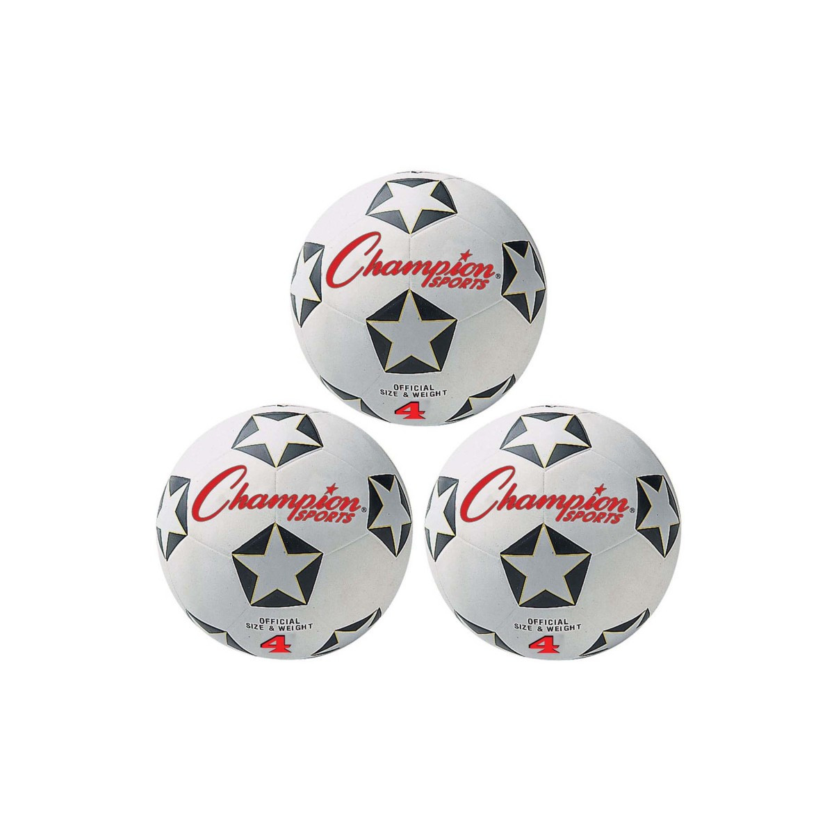 Gym classes, indoor recreational leagues and camps will enjoy practicing and playing games with the Champion Sports Rubber Soccer Ball. Designed with a rubber, nylon wound cover to maintain its shape, this size 4 soccer ball is durable enough for practices or games. The 2-ply bladder offers better air retention for less inflating and more playing. Sold as a pack of 3 soccer balls.
