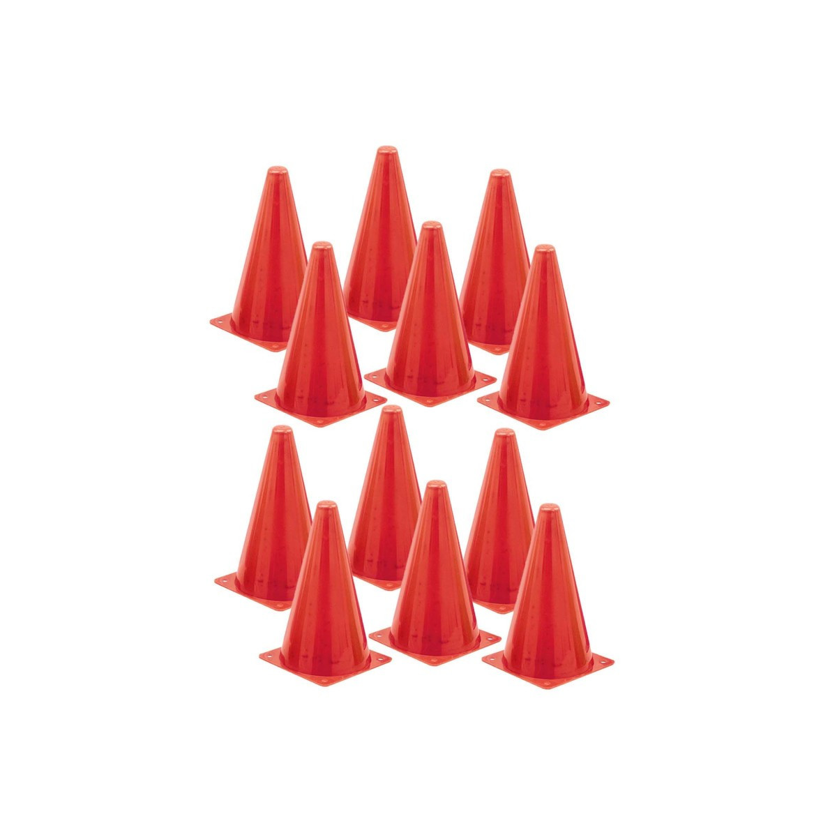 Create an obstacle course, mark boundaries, or practice agility with the Hi-Visibility Fluorescent Poly Cone. These Hi-Visibility Fluorescent Poly 9" Cones are a bright fluorescent orange with a weighted base. Sold as a pack of 12 cones.