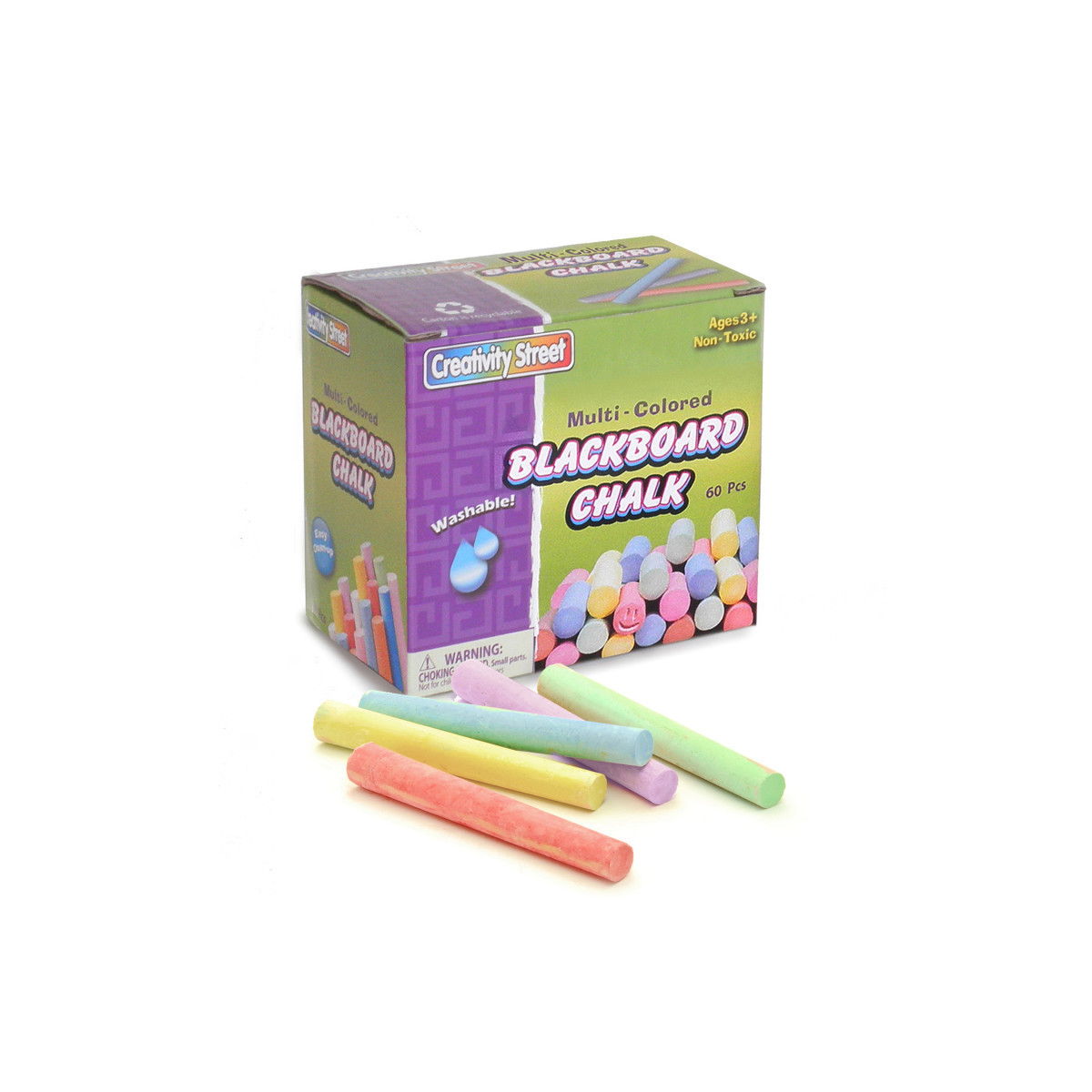 Blackboard chalk that is great for teachers during classroom instruction, and also for students on chalk lapboards during individual and group work. All chalk is 3/8" diameter and 3-1/4" in length. Each pack includes 60 pieces of non-toxic, washable blackboard chalk in assorted colors.