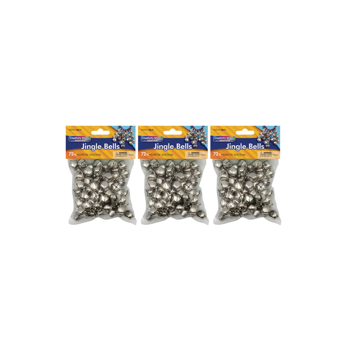 Creativity Street® Jingle Bells will add a little jingle to any arts or crafts project. These bells are approximately 0.63" in diameter, and feature a loop at the top to easily attach to any project. Perfect for winter and holiday crafts, DIY projects, gift wrap embellishments, costumes, and more. Each pack includes 72 bells. Sold as 3 packs, 216 bells total.