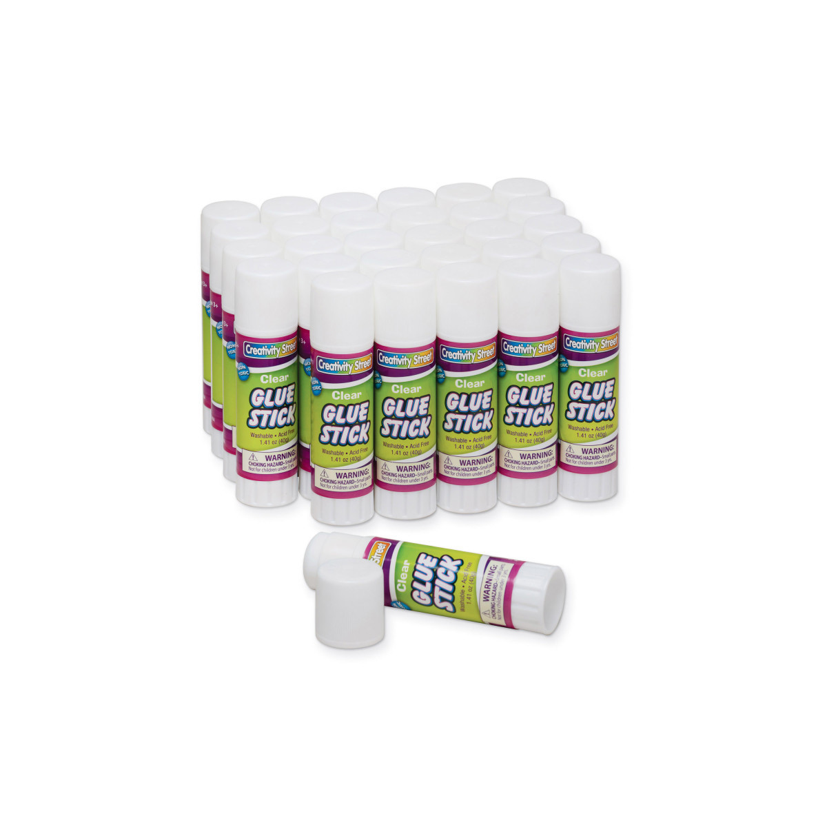 Creativity Street® glue sticks are a necessary craft essential to make any project stay together! Each glue stick contains 1.41 oz. Glue sticks are washable and certified non-toxic. Each pack includes 30 glue sticks.