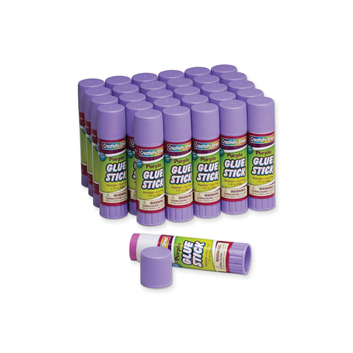 Creativity Street® glue sticks are a necessary craft essential to make any project stay together! Each glue stick contains 1.41 oz. Glue sticks are washable and certified non-toxic. Each pack includes 30 glue sticks.