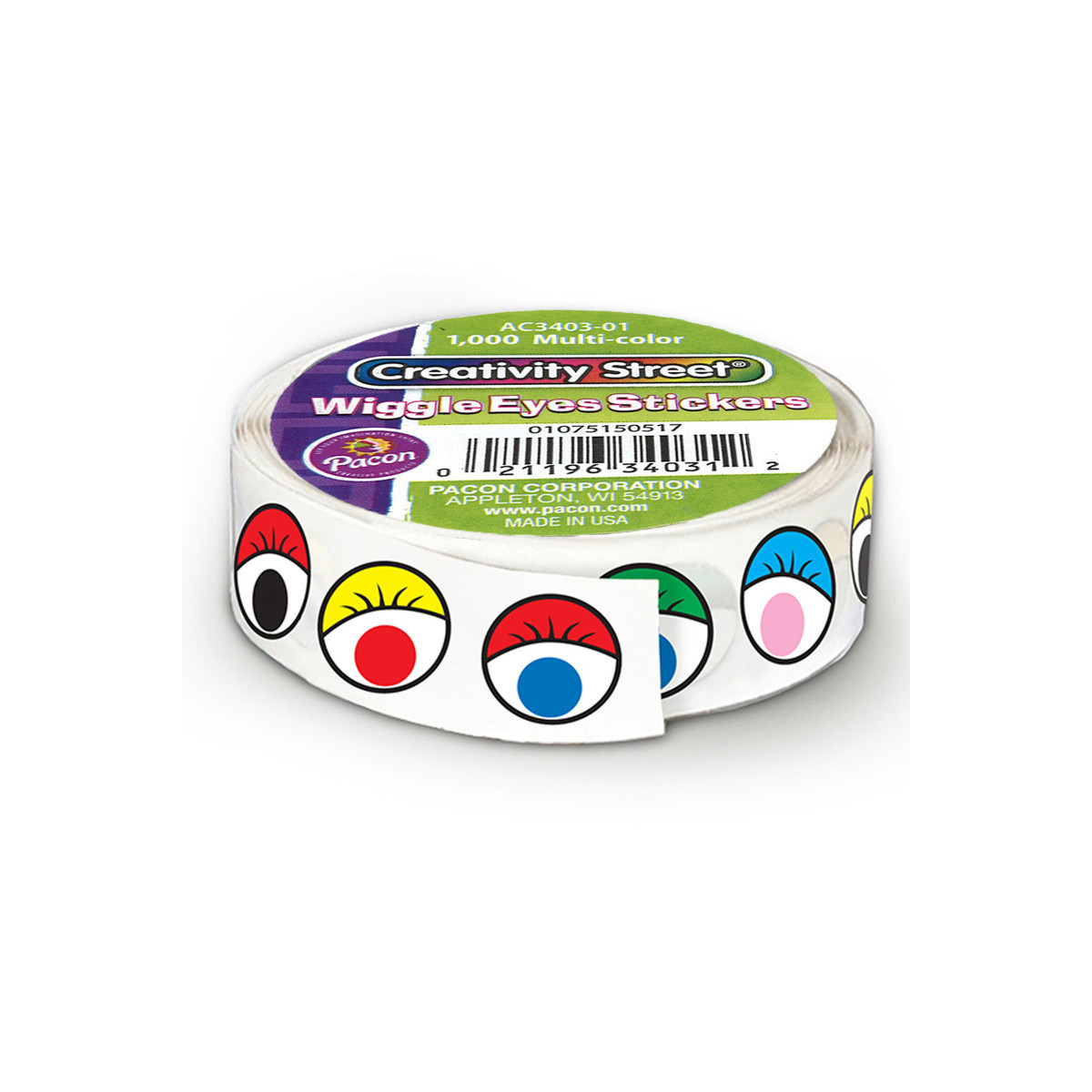 These convenient peel and stick Wiggle Eyes Stickers on a roll adhere easily to different mediums. Over 1000 self-adhesive, 1/2" diameter, multi-colored Wiggle Eyes per roll.
