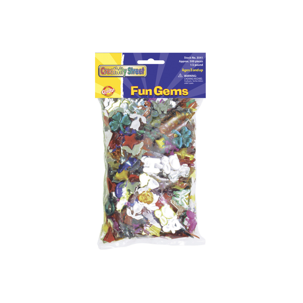 This half pound bag of acrylic gems include bright and colorful letters, shapes and objects that add a touch of sparkle, shine and dimension to any project. These gemstones have a flat metal backing to make it easy for gluing to any craft project.