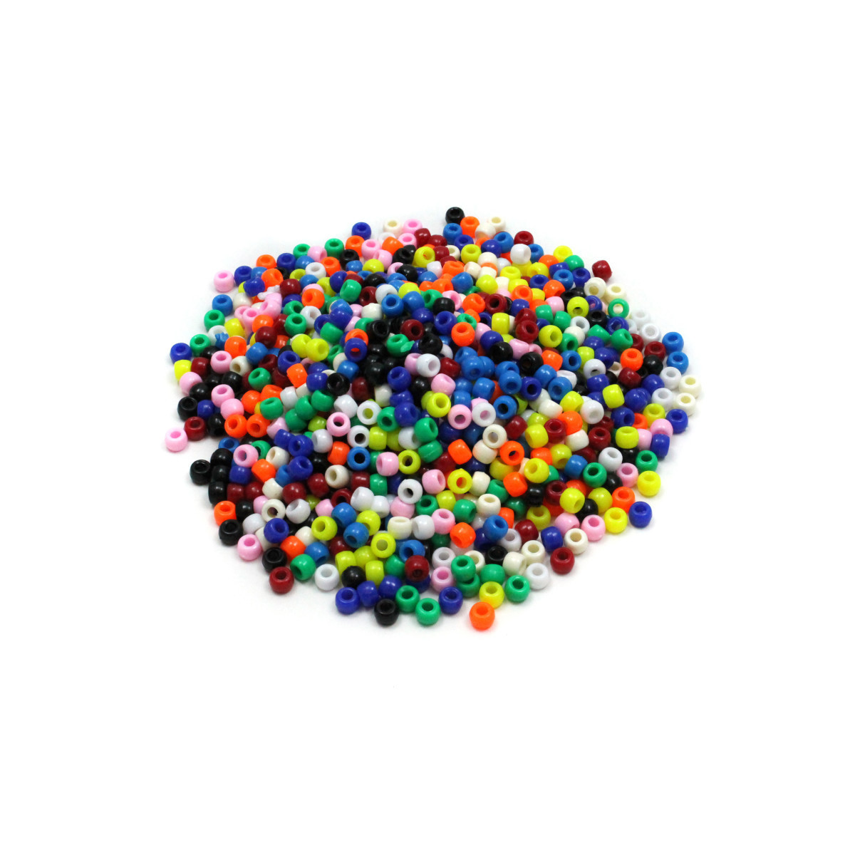 Plastic pony beads are perfect necklaces, bracelets, key chains, and more! The Bright Hues color assortment features several fun colors to make your projects stand out. Each bead measures 6 mm x 9 mm. Large pack size is perfect for parties, classrooms, and other large groups. Each pack includes 1000 beads in assorted bright hues.
