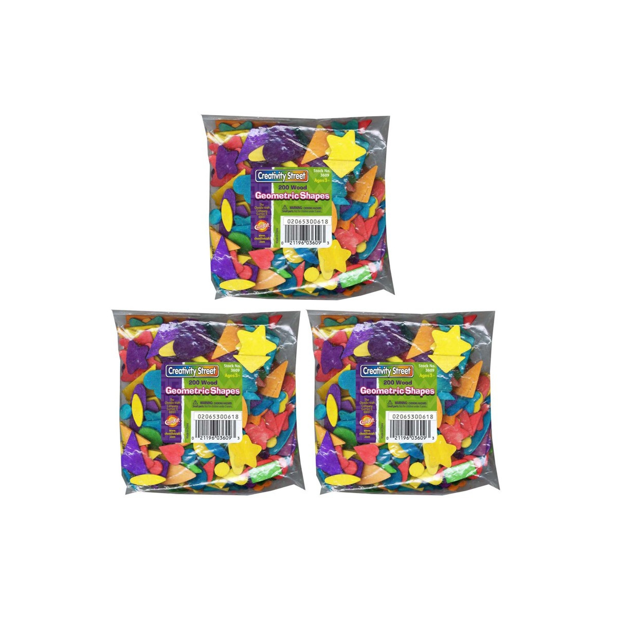 Creativity Street Wood Crafts can be used in a wide variety of arts and crafts projects at any age. Brightly colored wood shapes range in size from 1/2" to 2" and approximately 1/16" thick. Each pack includes 200 pieces. Sold as 3 packs for a total of 600