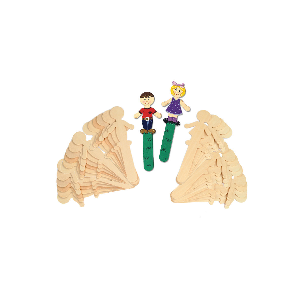 People Shaped Wood Craft Sticks come in two different designs, boy and girl. Each package features equal numbers of each design. These craft sticks are approximately 5.5" tall. Each pack includes 36 pieces.