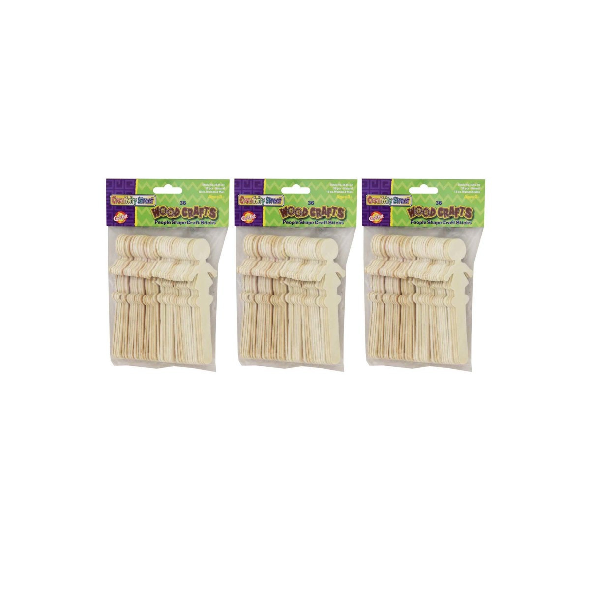People Shaped Wood Craft Sticks come in two different designs, boy and girl. Each package features equal numbers of each design. These craft sticks are approximately 5.5" tall. Each pack includes 36 pieces. Sold as 3 packs, 108 pieces total.