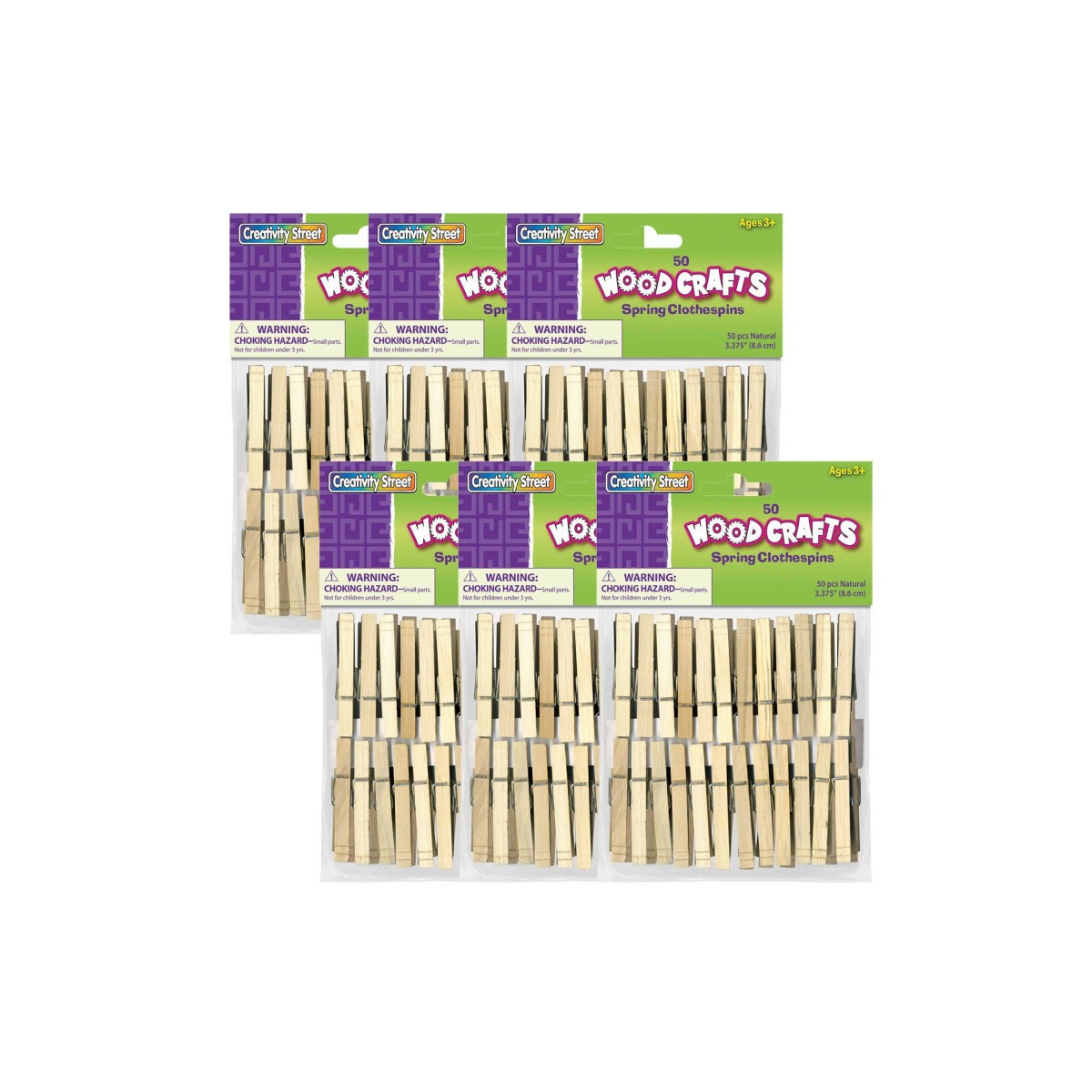 Natural wood spring clothespins are a great addition to any arts and crafts project. They are easy to paint and stain, and can be used to create animals, seasonal decorations and much more. Extra-Large Spring Clothespins are 3.38" in length. Each pack includes 50 pieces. Sold as 6 packs for a total of 300 pieces.