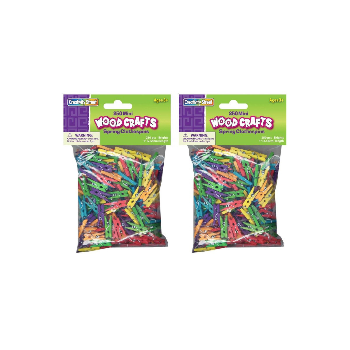 Mini Clothespins have many arts and crafts applications. They can also be used to hang student artwork around the classroom or home. Perfect for all types of craft projects or activities. These clothespins in bright hues assortment measure 1" in length. Each pack includes 250 clothespins. Sold as 2 packs, 500 clothespins total.