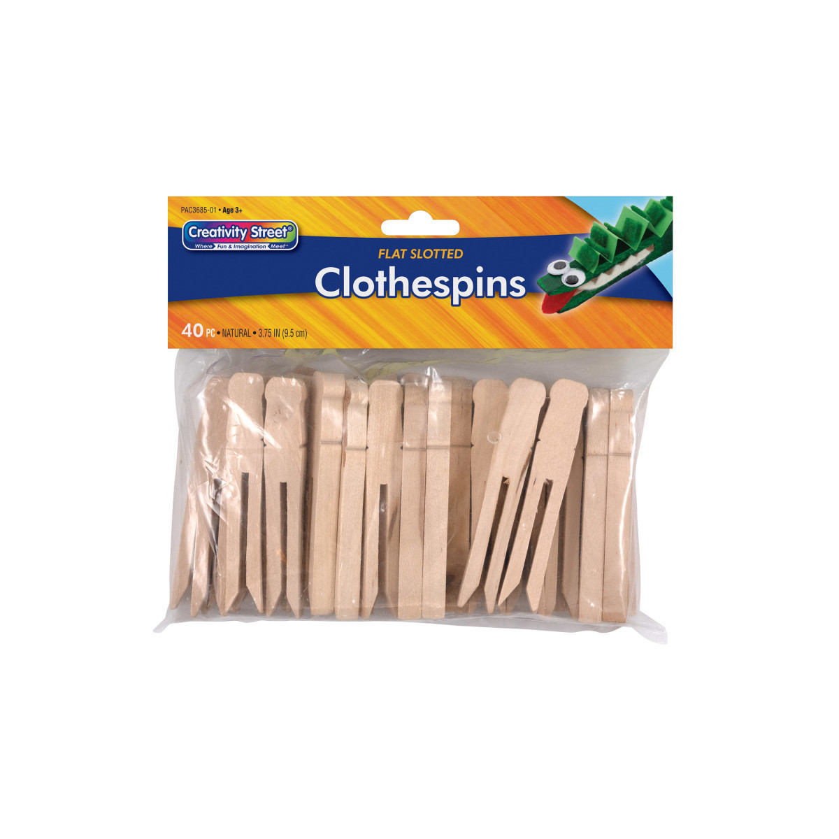 Natural Flat Slotted Clothespins are ideal for arts and crafts projects. The flat sides makes it easy to glue multiple clothespins together, or to glue other arts and crafts materials to the clothespin. Each clothespin is 3-3/4" in length. Each pack includes 40 pieces.