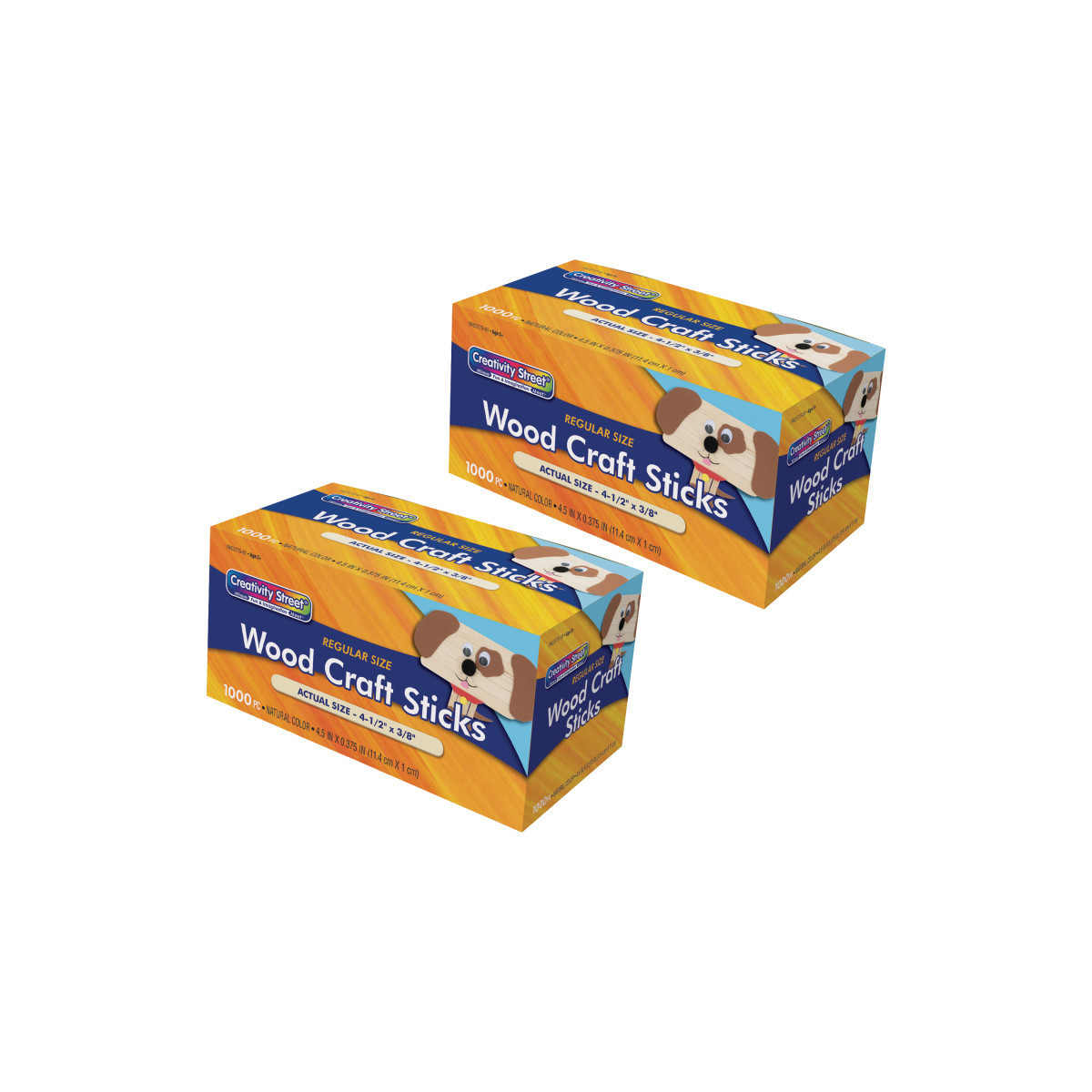 "Ice cream stick" sized wood craft sticks are designed for a multitude of arts and crafts projects. Perfect for stirring and mixing inks and paints. Each stick is 4.5" long, .38" wide and 2 mm thick. Each pack includes 1000 pieces. Sold as 2 packs, 2000 pieces total.