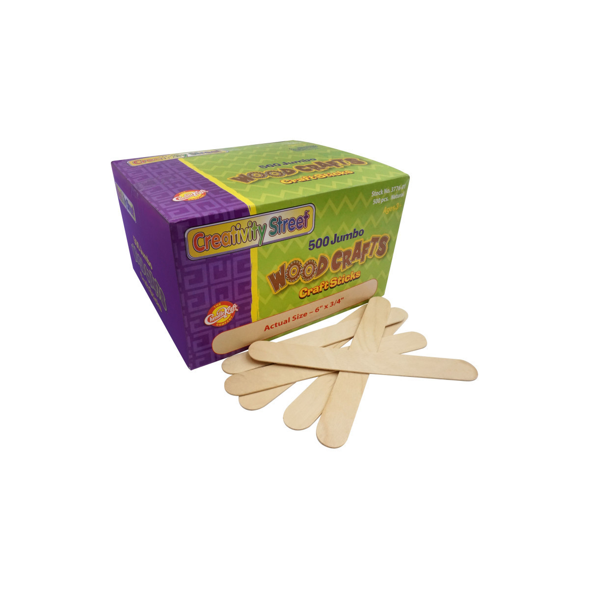 Jumbo craft sticks are the size of "tongue depressors" and are ideal for any arts and crafts project. Perfect for stirring and mixing inks and paints. Each stick is 6" in length, .75" wide and 2 mm thick. Each pack includes 500 sticks.