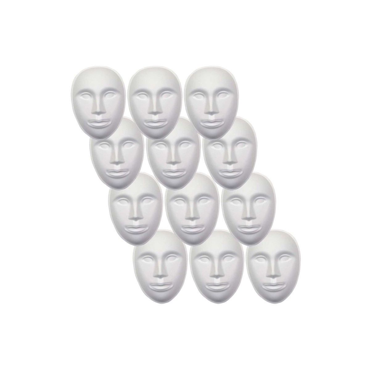 The smooth surface of the paperboard mask makes it ready to paint and decorate. Measures approximately 8" tall. Sold as a pack of 12 masks.