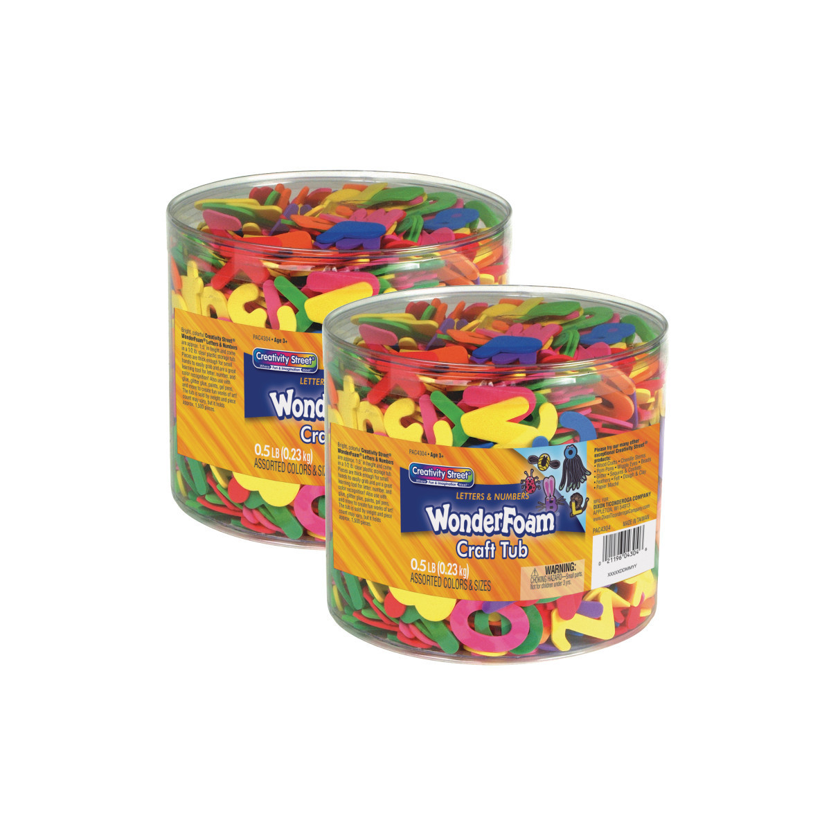 Bright, colorful WonderFoam® letters and numbers in a 1/2 pound clear plastic storage tub. Pieces are thick enough for small hands to grab easily. A great learning tool! Approximately 1,500 pieces. Sold by weight, piece count may vary. Sold as 2 packs.