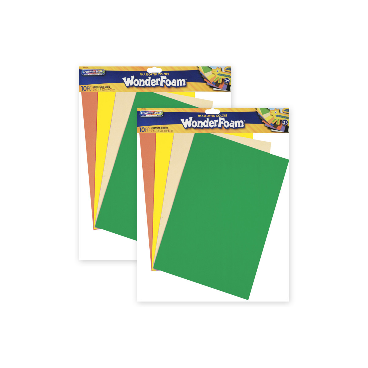 Our large 12" x 18" WonderFoam® sheets are easy to cut and accept many types of glue, paints and markers. Use for cutting out your own shapes or as the base for other arts and crafts projects. Each pack includes 10 sheets in 10 colors. Sold as 2 packs for a total of 20 sheets.