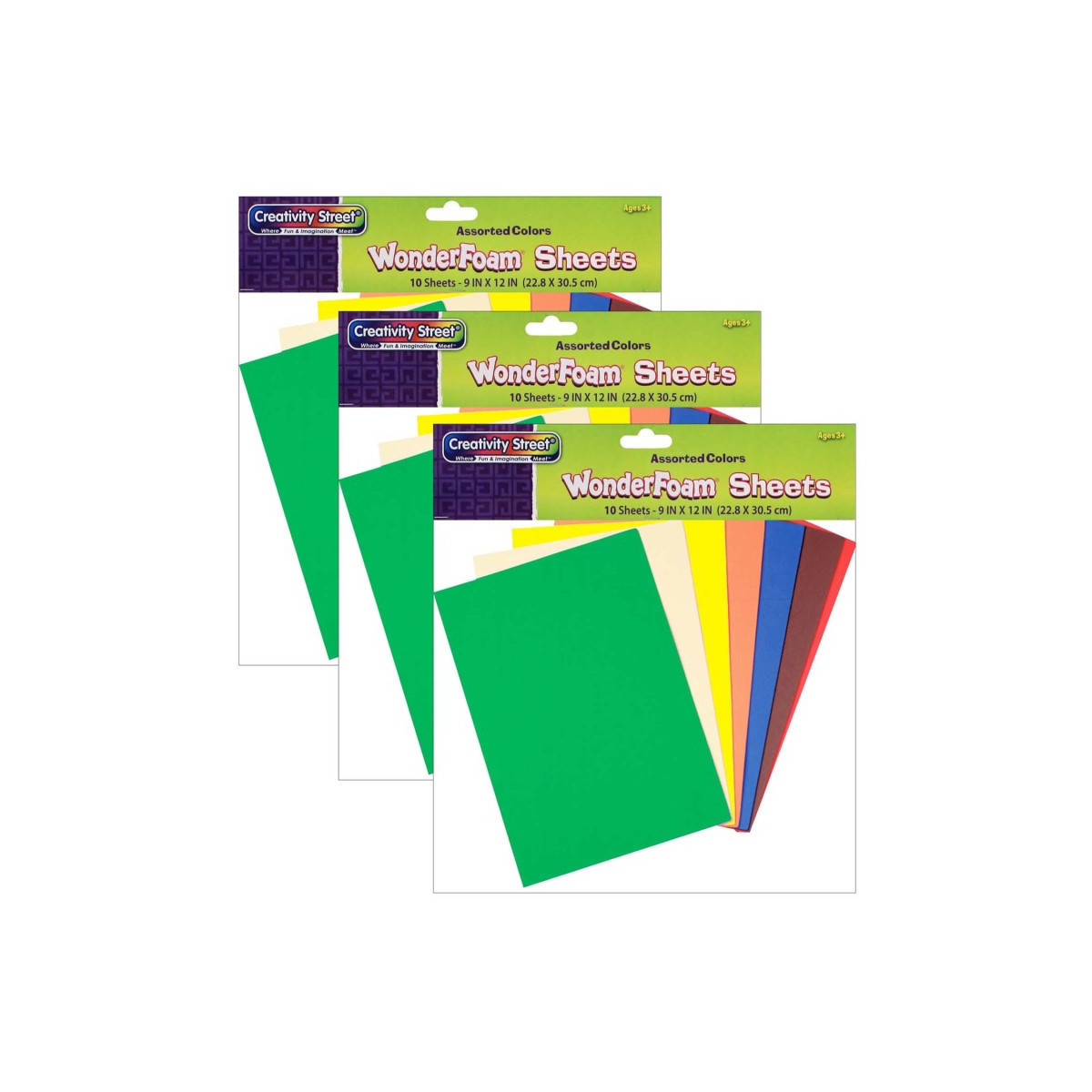 Our Creativity Street® WonderFoam® sheets are easy to cut and accept many types of glue, paints and markers. Use for cutting out your own shapes or as the base for other arts and crafts projects. Sheets measure 9" x 12". Each pack includes 10 sheets of WonderFoam® in 10 different colors. Sold as 3 packs for a total of 30 sheets.