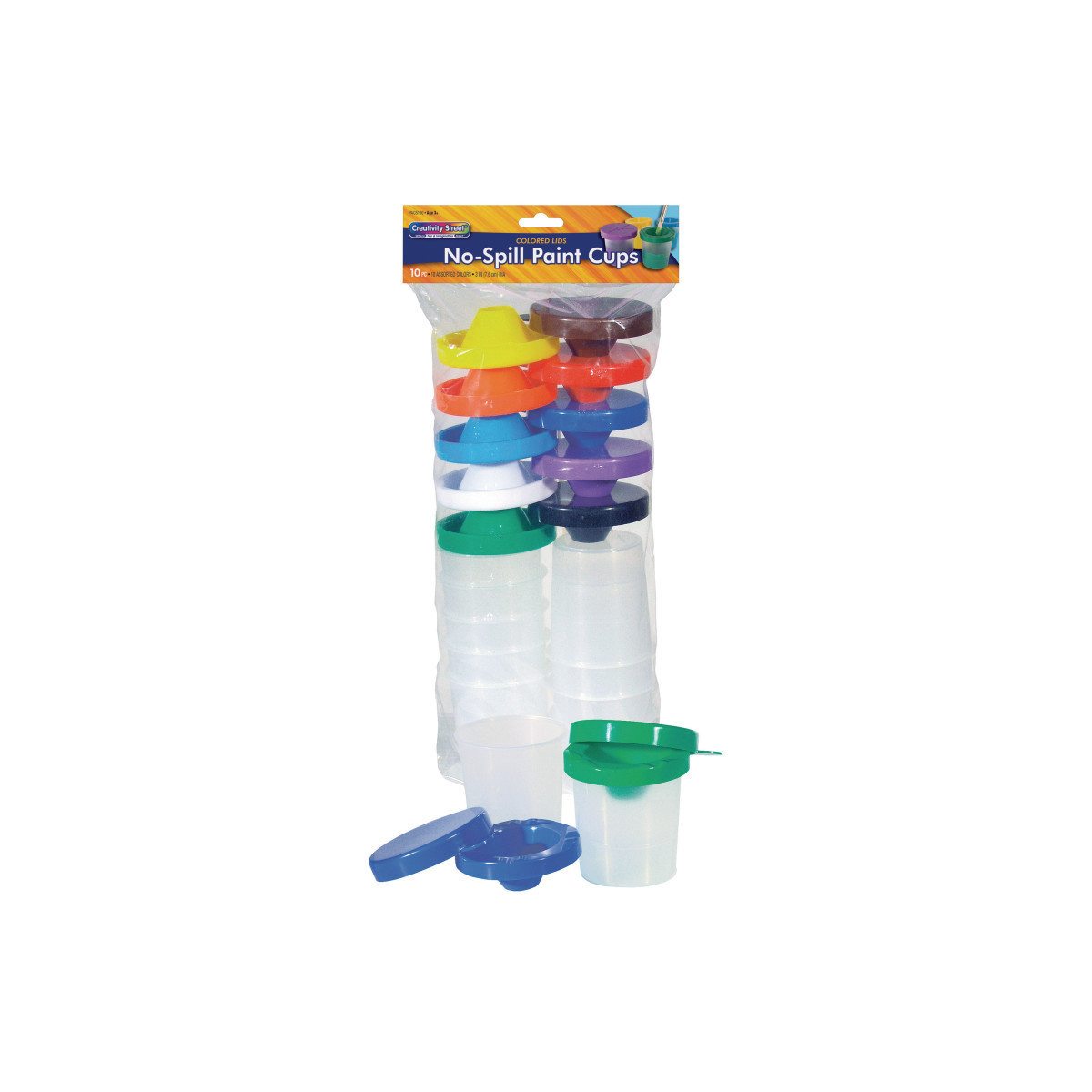 No-Spill Paint Cups The color of the lid easily identifies the color of the paint inside. The outer lid seals the cup securely while the inner lid keeps the paint from spilling out if the cup.