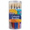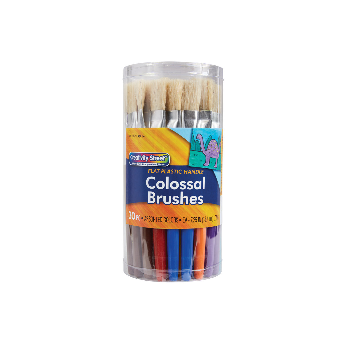 Great big brushes are perfect for small hands, giving young artists better control. These flat brushes hold a lot of paint for ease-of-use. Comes in a durable plastic canister that holds 30 brushes.