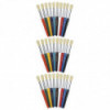 Short handles are great for small hands. Each pack includes 10 size 10 brushes in assorted colors of plastic handles. Sold as 3 packs for a total of 30 brushes.