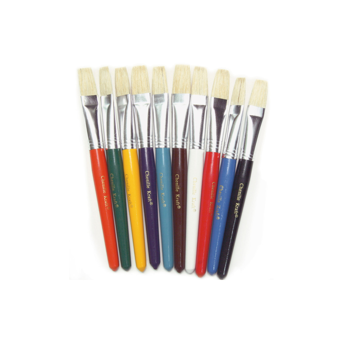 Set contains 10 brightly assorted flat brushes that match our 10 Assorted No-Spill Paint Cups which will aid in teaching children color recognition.