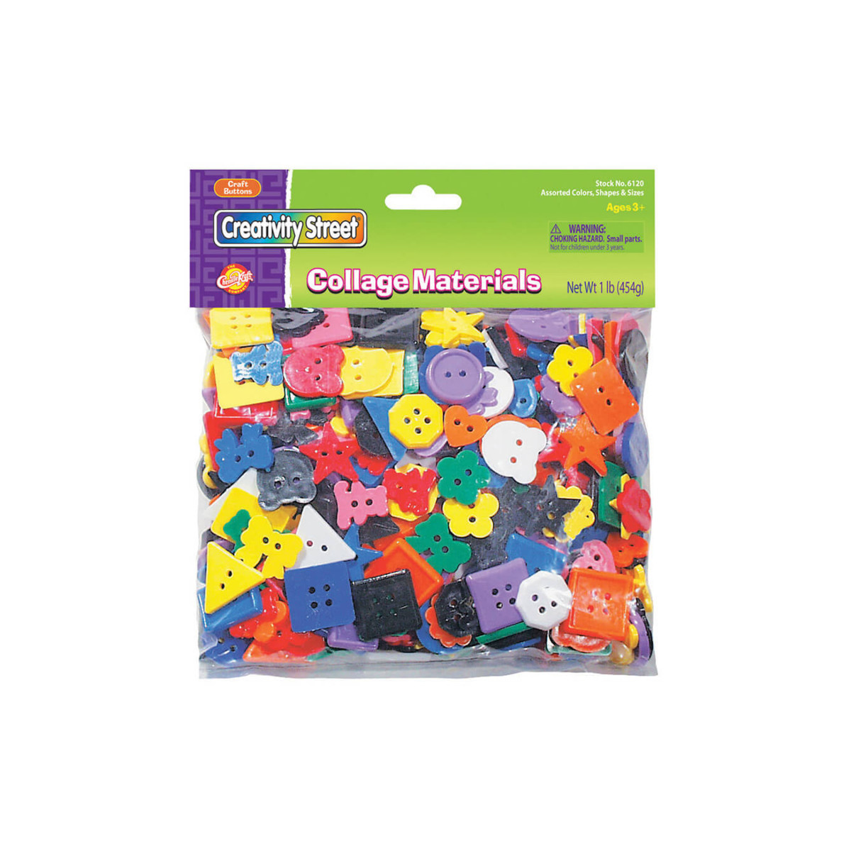 Add color to any project with this craft essential! This Plastic Button Assortment contains large buttons in assorted shapes and bright colors. This 1 pound bag features a variety of sizes, shapes and colors. Buttons range in size, but are approximately 3/4" to 1".