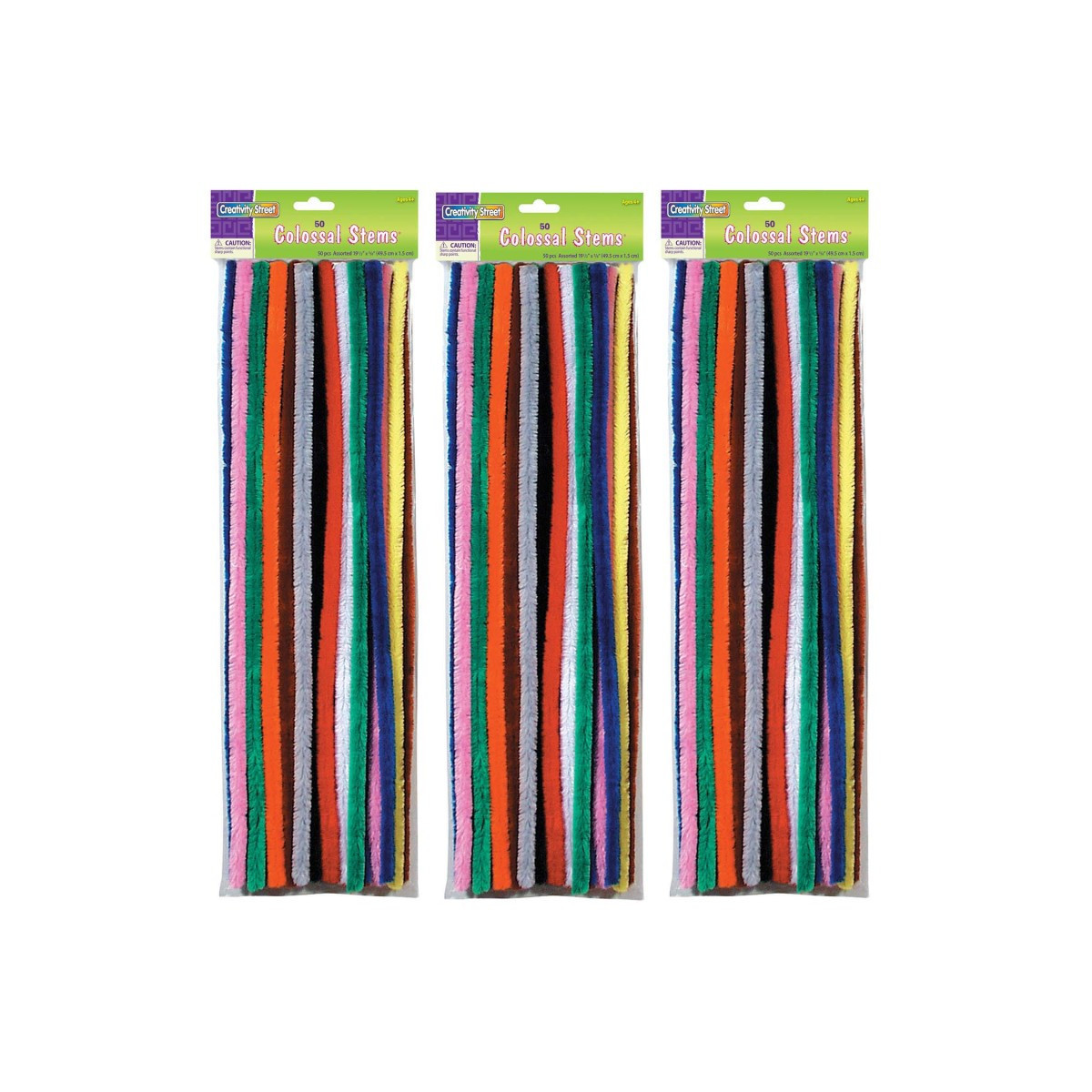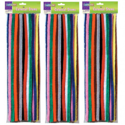 Our Colossal Stems™ has proven to be an instant classic! Great for small hands and for adding a new dimension to craft projects. These extra large chenille stems are a WHOPPING! 19-1/2" long with a 15mm diameter (over 1/2"). ALSO AVAILABLE in Bumps and Tinsel Stems. Sold as 3 packs for a total of 150 colossal stems.