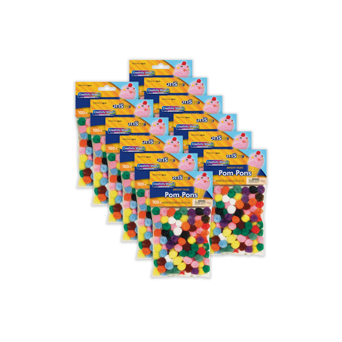 Soft and crush resistant Pom Pons are great for making dolls, ornaments or wherever your creativity takes you. These 1/2" poms provide a variety of colors for all types of arts and crafts projects. Each pack includes 100 poms. Sold as 12 packs for a total of 1200 pom pons.