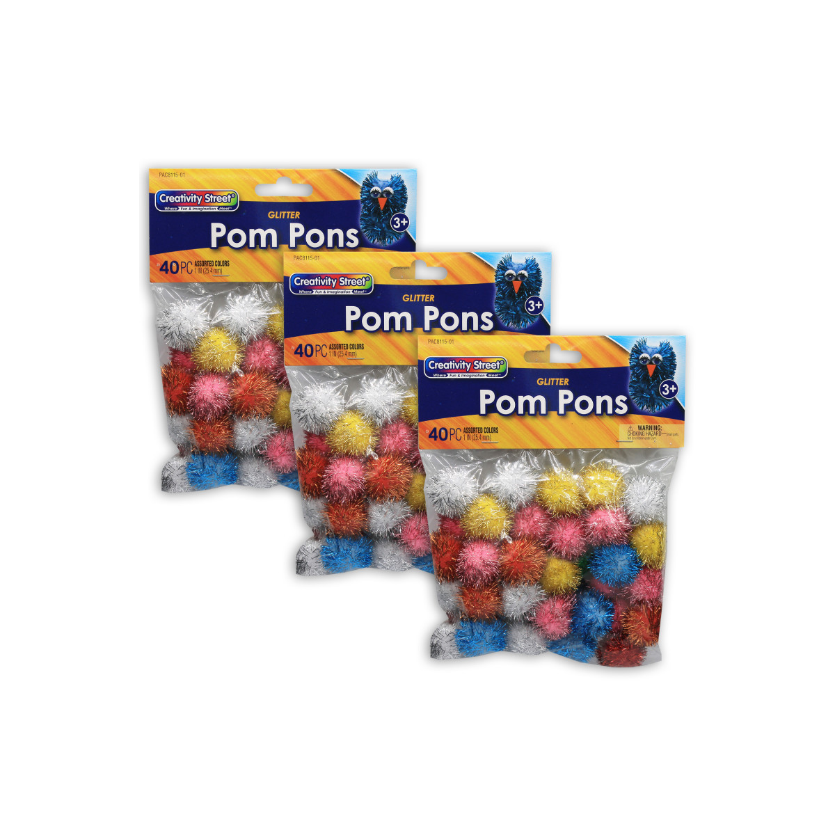 Our unique 1" glitter poms are great for jewelry, animals, collages, holiday crafts and more! Each pack includes 40 pieces in a glitter assortment. Sold as 3 packs for a total of 120 poms.