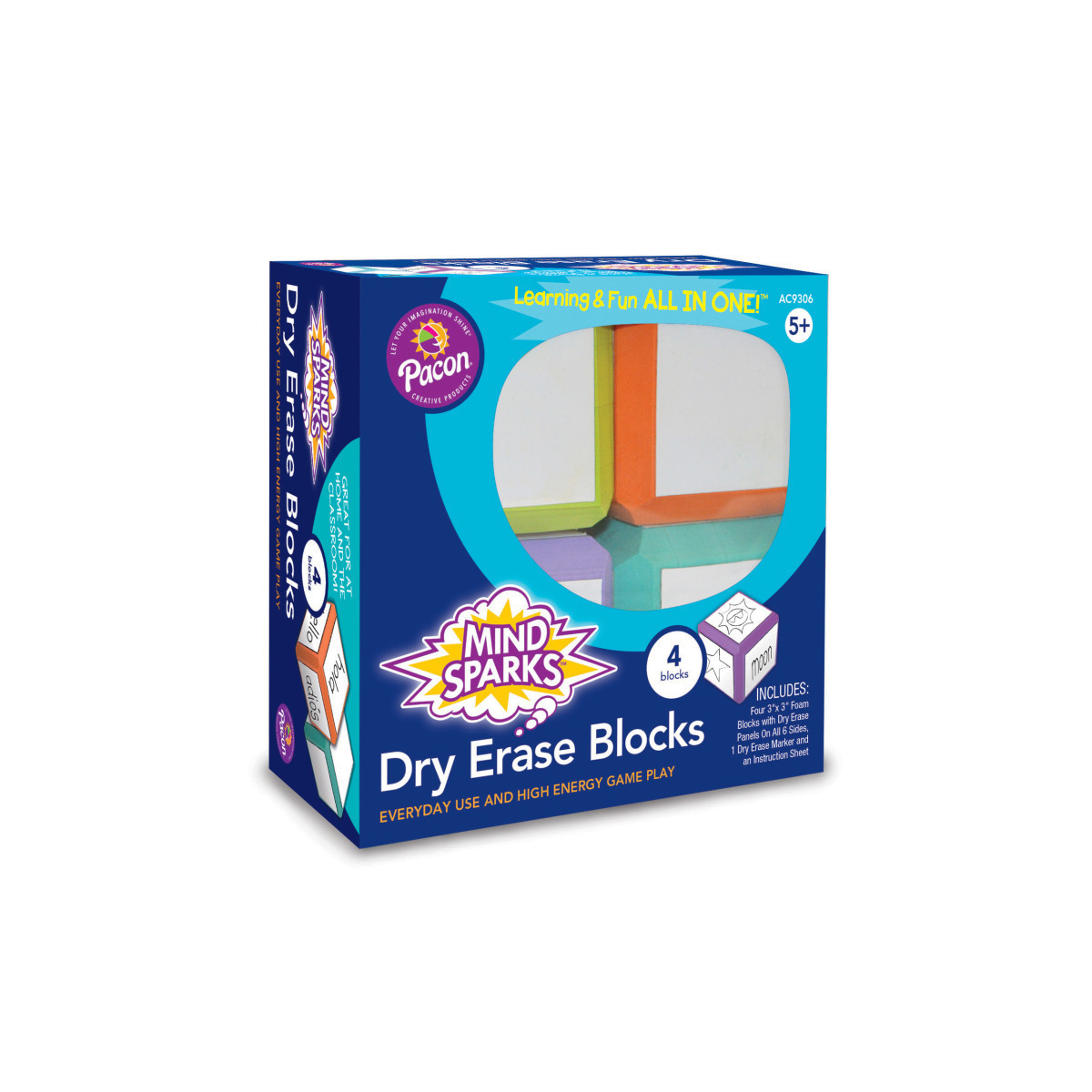 These Assorted Color Blocks have dry erase surfaces on each side which allows students to use them as dice, picture cubes, puzzle cubes, word games, number games or letter games. The possibilities are endless. Set contains 4 Assorted Colored Blocks that are 3" x 3" x 3". Any type of dry erase marker can be used with these blocks.