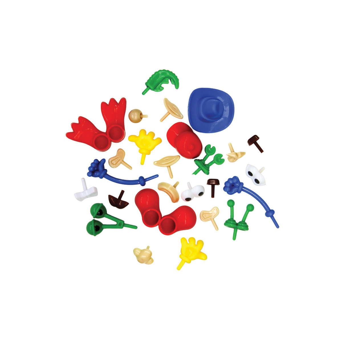 Great add-ons to personalize dough sculptures. Shoes, eyes, hands, hats and more make projects jump to life. Includes 26 pieces in assorted sizes and colors.